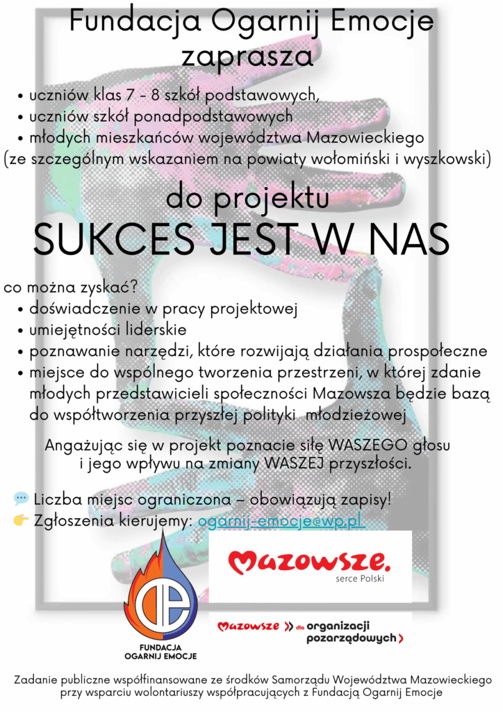 Do realizacji działań zaprosimy młodzież, uczniów szkół podstawowych, ponadpodstawowych, mieszkańców Mazowsza – ze